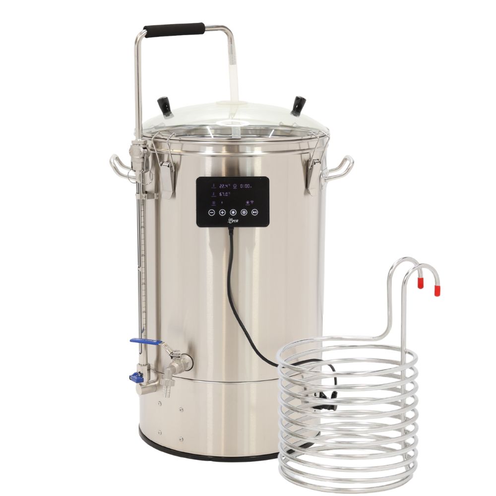 Автоматическая пивоварня iBrew 40 серии Auto — электрический сусловарочный котёл с автоматикой, встроенной системой рециркуляции сусла и возможностью управления со смартфона по wi-fi. Проводите затирание солода и кипячение полученного сусла в одной ёмкости. Эта сусловарня подойдёт как профессионалам, так и новичкам. В ней можно комфортно сварить до 28 л пивного сусла.