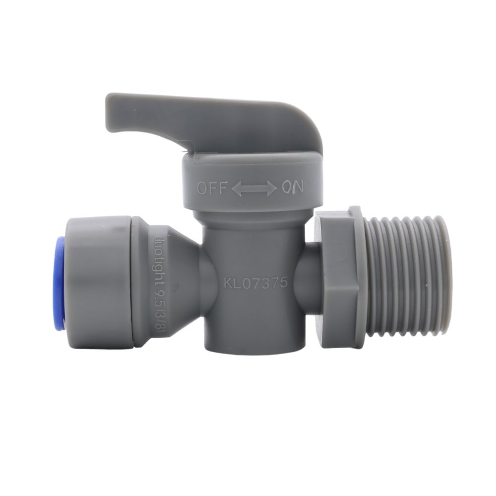 Краник с цанговым соединением и переходом на наружную резьбу.