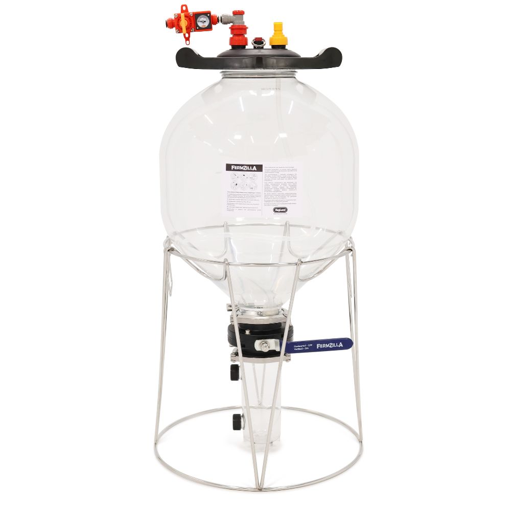 ВАЖНО: при использовании FermZilla под давлением необходимо заполнить ферментер водой и проверить его соединения на герметичность, задав избыточное давление. Для этого наполните FermZilla водой полностью, до края, задайте давление не менее 1 атм. Убедитесь, что вокруг всех крышек и резьбовых соединений нет протечек. Протестируйте ферментер перед первым использованием. Далее тестируйте ферментер каждый год. Подробнее читайте в инструкции по эксплуатации.
