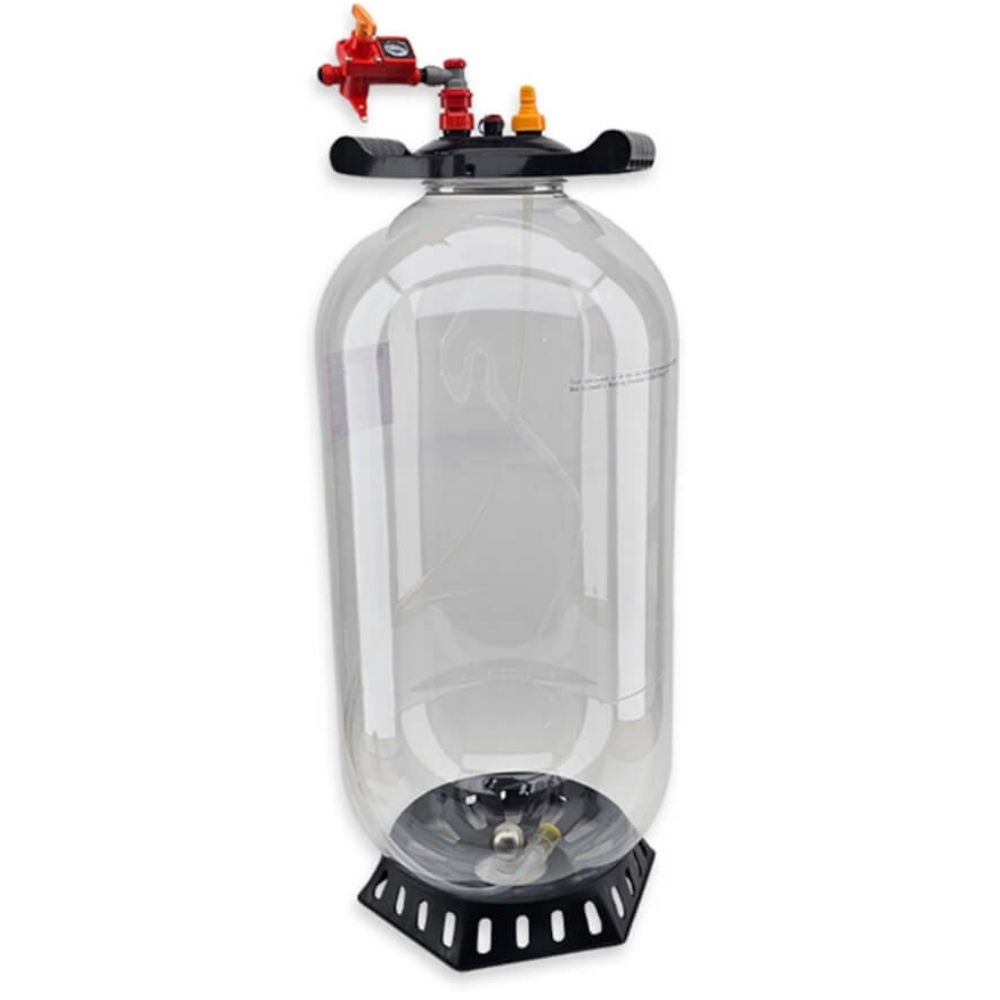 Это улучшенное поколение с крышкой Easy-Grip, пластиковой подставкой и комплектом для сбраживания и перелива под давлением, включающий: шпунт-аппарат Blowtie, 2 пластиковые крышки для карбонизации и шланг с поплавком и фильтром.