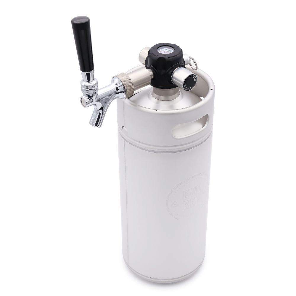 Мини-кег Evokeg 4 л с разливочной головкой — компактная система для хранения, карбонизации и розлива пива и других напитков под давлением. Подходит для розлива пива, сидра, комбучи, других газированных напитков и коктейлей без твёрдых частиц, например «Маргарита» и «Апероль».
